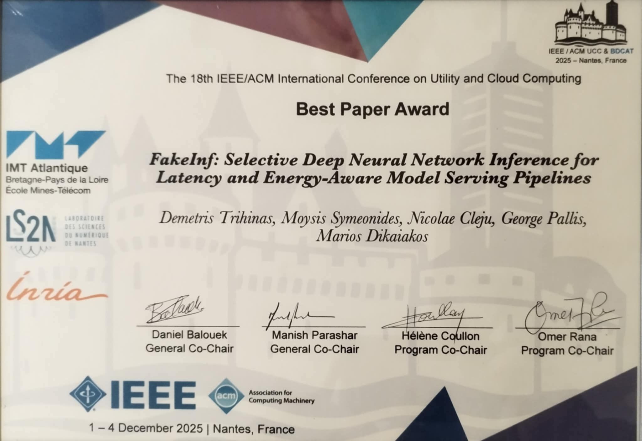 Demetris Trihinas, Moysis Symeonides, Nicolae Cleju, George Pallis and Marios Dikaiakos, for ‘FakeInf: Selective Deep Neural Network Inference for Latency and Energy-Aware Model Serving Pipelines’.